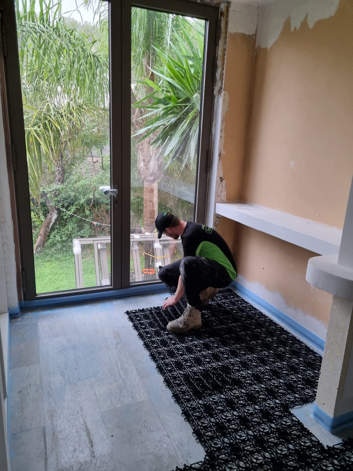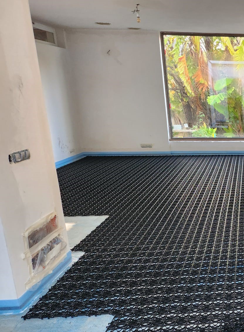 For this special project on sunny Ibiza we installed 273m² of SpeeTile10 on an existing tiled floor and poured it with SpeeTop levelling mortar over two storeys. This assignment was carried out in collaboration with WIJKOPENPANDEN.
